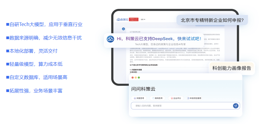 支撑这些功能高效运转的,是科策云背后的核心技术实力。不同于传统信息查询平台,科策云基于大数据研究、人工智能技术、大模型文本处理与标签算法等核心技术,研发出具有自主知识产权的Tech大模型,相比传统AI算法,其准确度提升至少130%,召回效率提升600%,能快速处理复杂的信息检索场景,减少60%的人工成本。这套大模型无需复杂操作,就能实现政策与企业的精准匹配、企业信息的快速筛选,让无论是企业员工还是个人用户,都能轻松上手使用,真正实现了“专业功能通俗化、复杂操作简单化”,这与阿里巴巴“千问”项目依托核心技术赋能场景的逻辑一致,都是以技术创新破解用户痛点,而非单纯的功能堆砌。